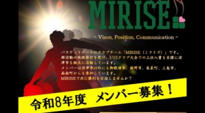 【バスケ】U15カテゴリー MIRISE(ミライズ)が、令和8年度の新規メンバーを募集!
