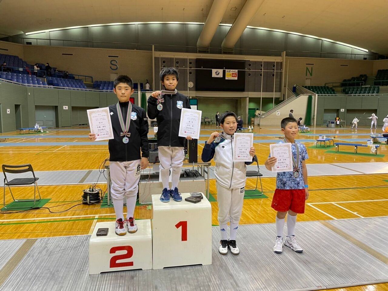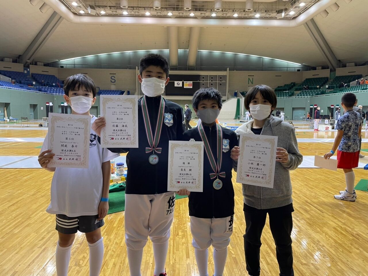 また、他にアスルクラロの選手が男子サーブルで5位・7位に。沼津フェンシングクラブの選手が3.4年男子フルーレで15位、5.6年女子フルーレで12位に。