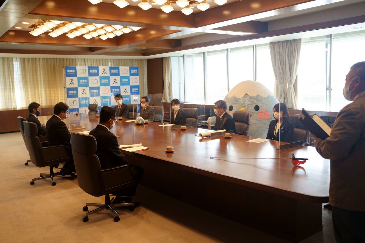 昨日(10日)、来年度より沼津を拠点に活動していくことを頼重市長に報告しに、信用金庫理事長らと共に沼津市役所を訪れたそう。