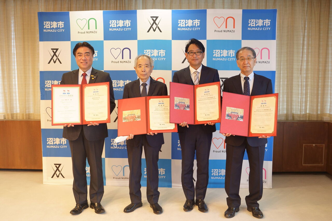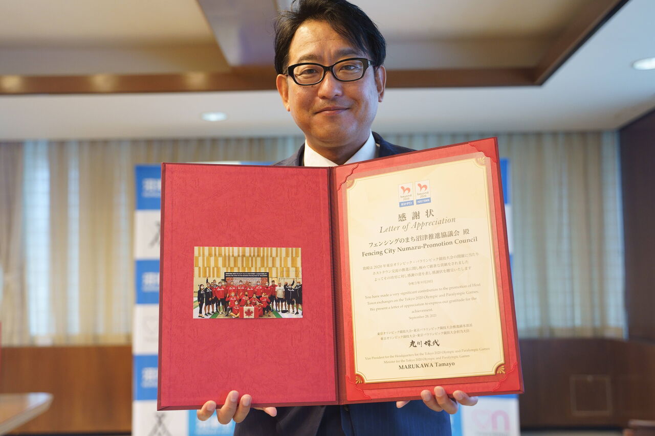 贈られたのは、「フェンシングのまち沼津推進協議会」「静岡県フェンシング協会」「沼津市ホストタウン推進協議会」の3団体。