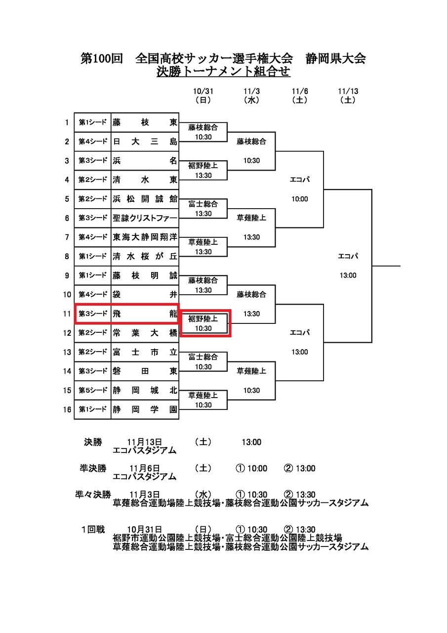 【サッカー】全国高校サッカー選手権大会静岡県大会決勝トーナメント、いよいよ明日から!頑張れっ飛龍!