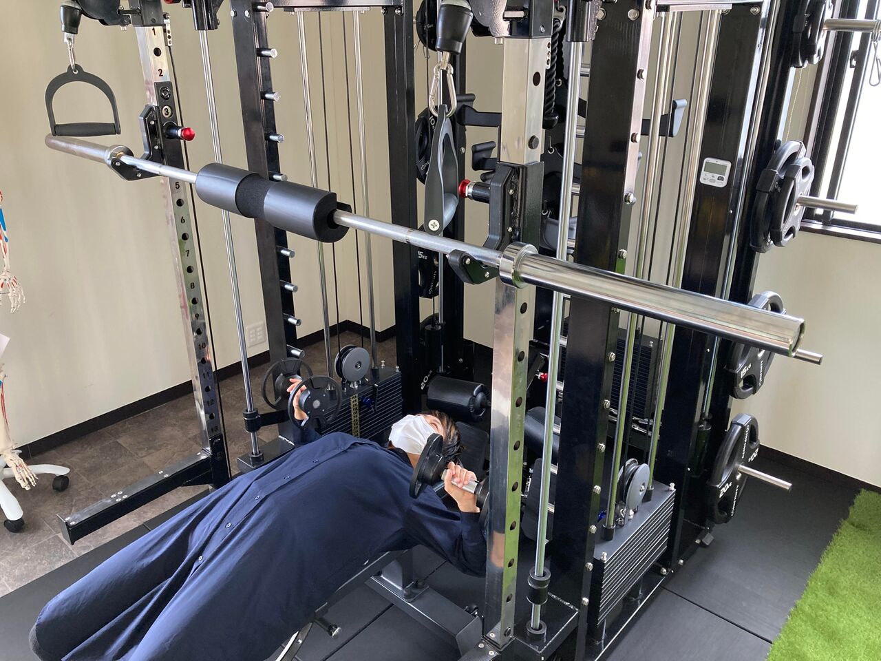 何十種類ものトレーニングが可能なマシーン!!!この一台でスクワットもベンチプレスも、、、色々出来ちゃいますよ。ここまでゴツイのは、スギウラ、久々にみました!!!