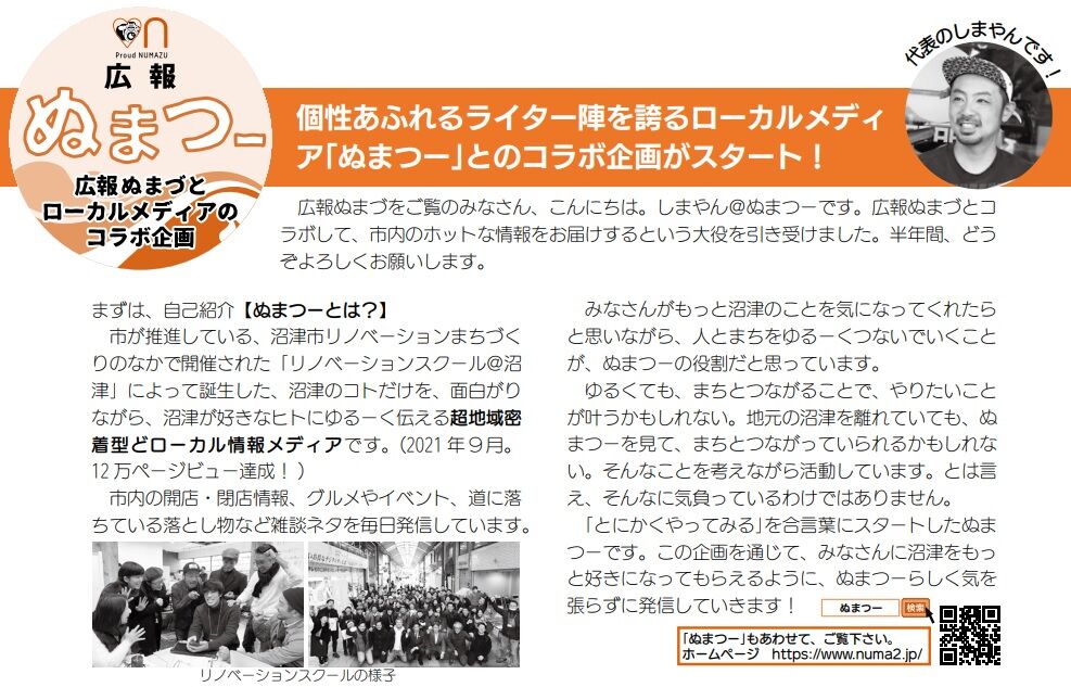 と思って、もう1回読み返してたら、なんと!「ぬまスポ」立ち上げのきっかけであり、お手本であり、運営サポートしてくれてる、地域密着型ローカル情報メディア「ぬまつー」さんが、「広報ぬまづ」とコラボするって記事が載ってるじゃないですか!ビックリ!すごーい!