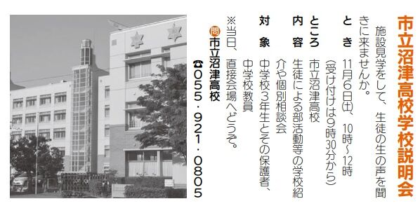 3つ目は部活動を紹介する「市立沼津高等学校説明会」です。
