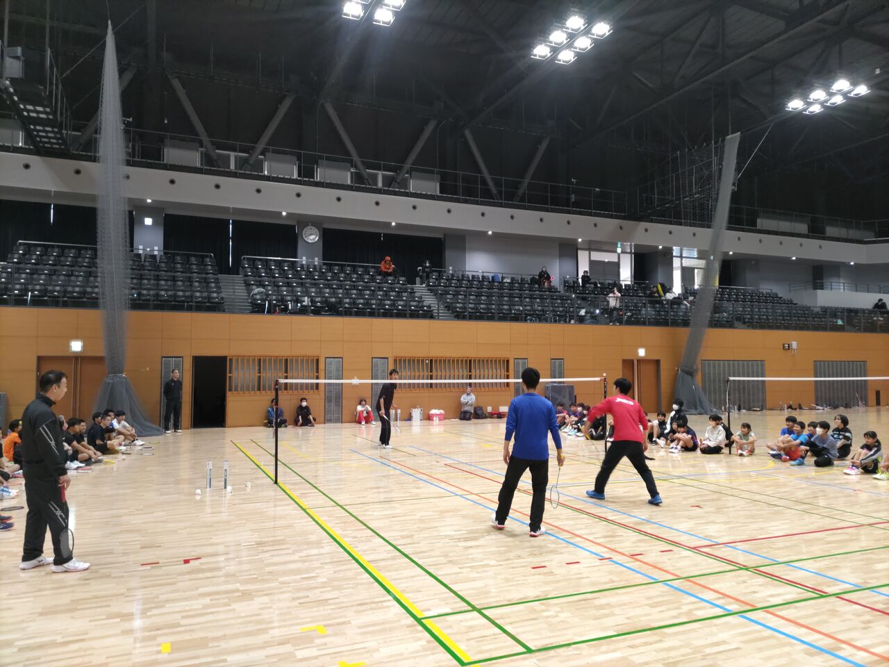 今年の講師は実業団リーグ、S/JリーグⅢで活躍するジヤトコ㈱バドミントン部の皆さん。当初お2人の予定でしたが、結局4人も来てくださいました。豪華ですね〜。沼津の子どもたちのためにありがとうございます!