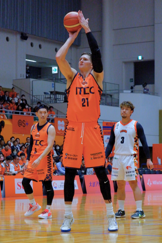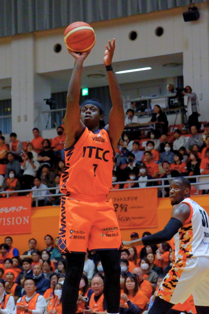 静岡はスターターの#0 山田 安斗夢選手、#7 トーマス・ブロープレー選手、#25 ケニー・ローソン・ジュニア選手、#41 加納 誠也選手に加え、#21 ジョン・ハーラー選手、#37 吉田 健太郎選手が2桁得点。