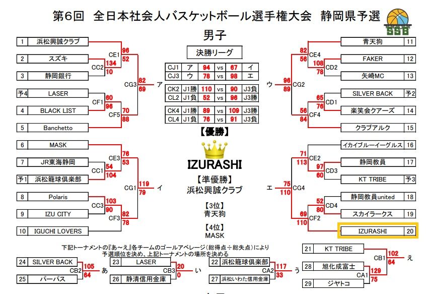 12月16~17日に行われた第6回全日本社会人バスケットボール選手権大会東海ブロック予選にIZURASHIが出場し、見事優勝し、2月に岩手県で行われる全国大会にも出場が決定!おめでとうございます!
