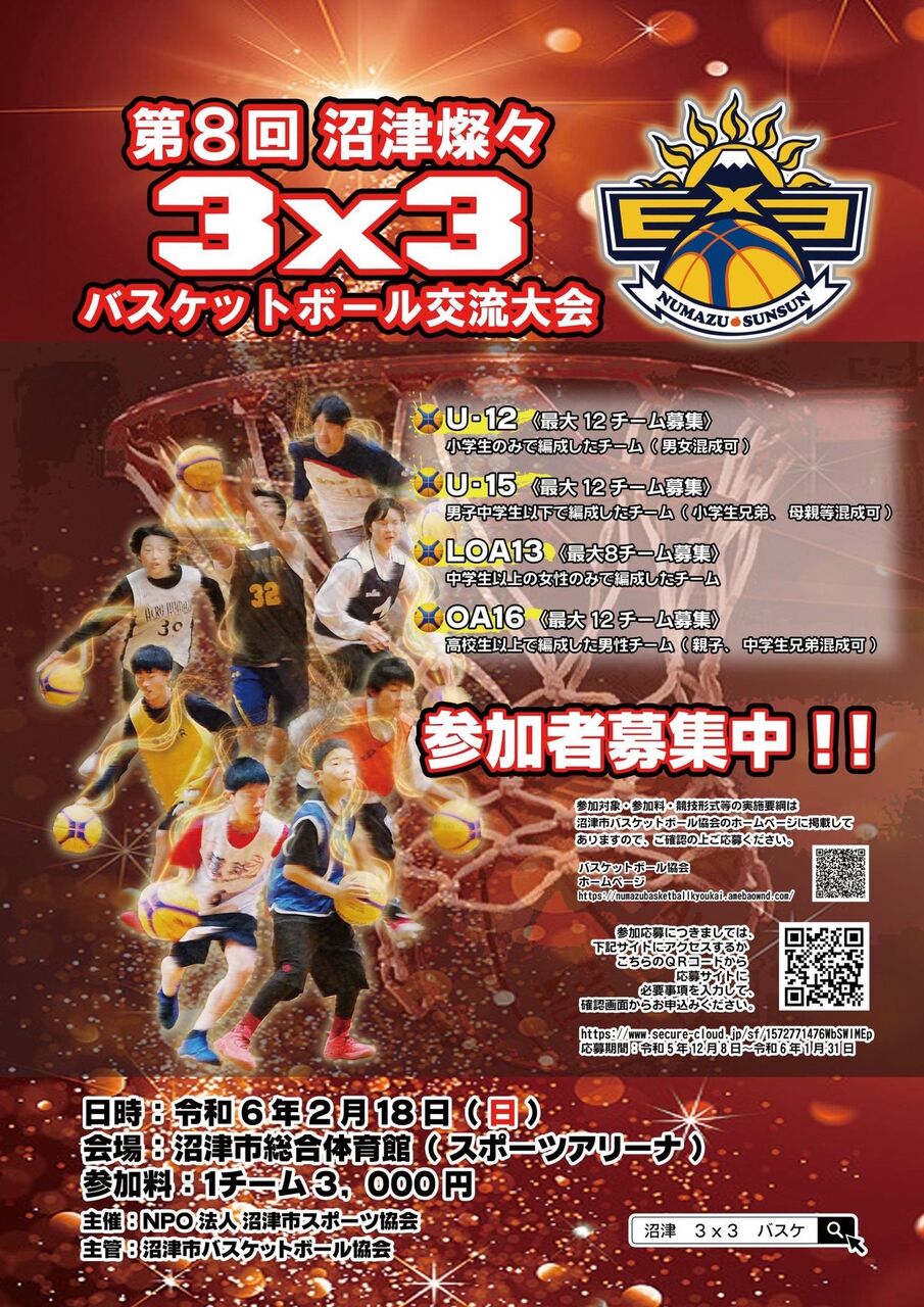 今年もNPO法人沼津市スポーツ協会が主催するバスケットボール交流大会3×3が開催されます▼