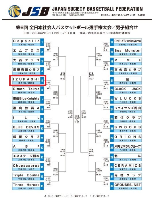 出典元:一般社団法人日本社会人バスケットボール連盟