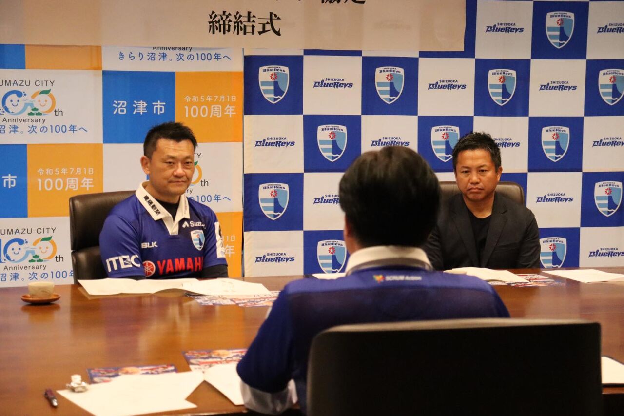 市長からは「沼津市ではスポーツの力でまちに活力を生み出そうと【スポーツを活かしたまちづくり】を進めており、今回の協定締結は、そうしたまちづくりを進める上で非常に喜ばしく、また心強く感じております」と。