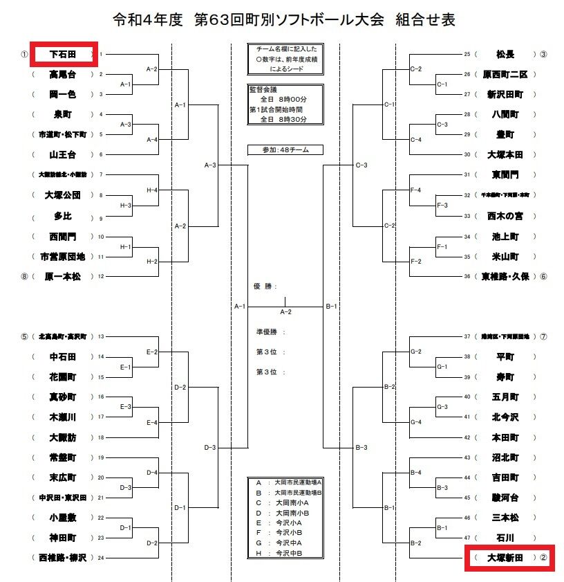 下石田と大塚新田はシードということで、端に位置してますねーーー