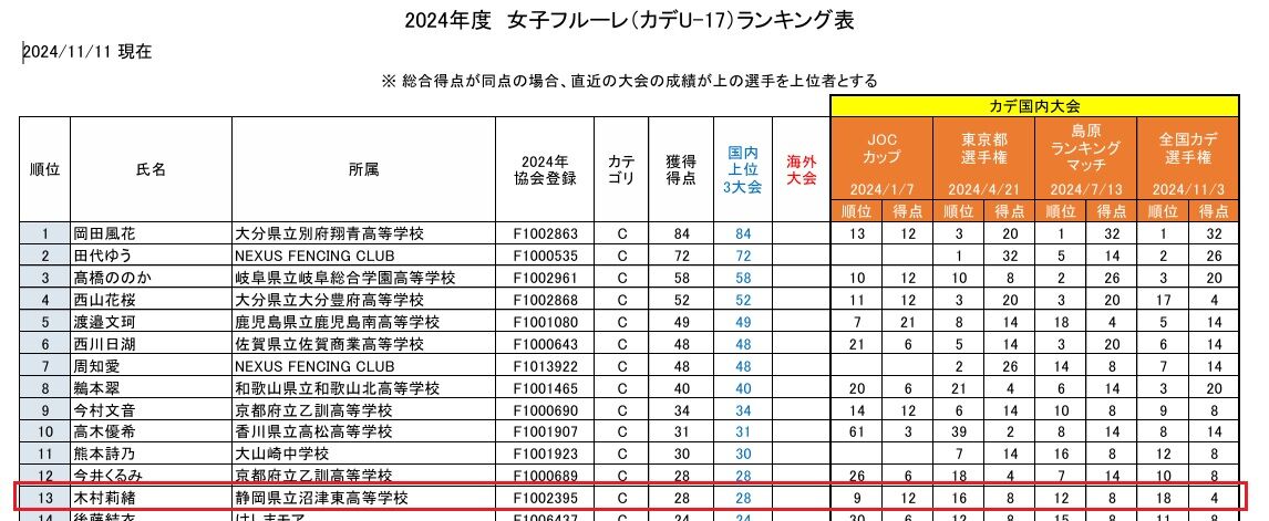 また、本日(10日)、カデ女子サーブルに鈴木輝愛選手(三島北/アスルFA)が出場します。鈴木選手も日本代表がかかっております!!!頑張れっ鈴木選手!!!