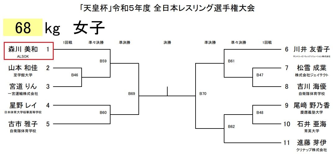 今大会の女子68㎏級のトーナメント表はこちら