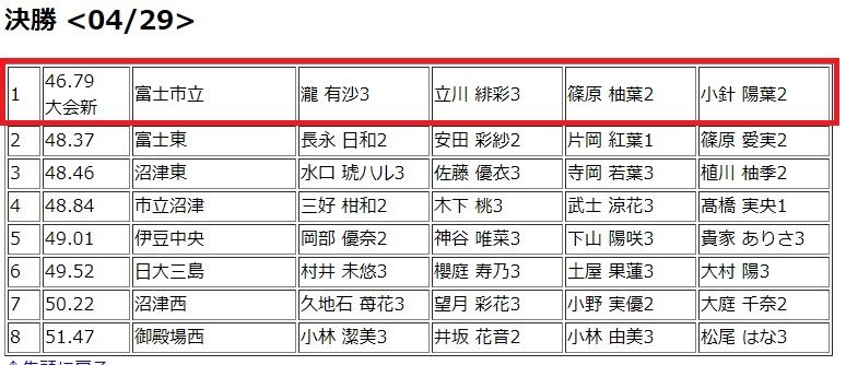 そりゃ、4×400mリレーも強いですよね。沼津東が優勝。