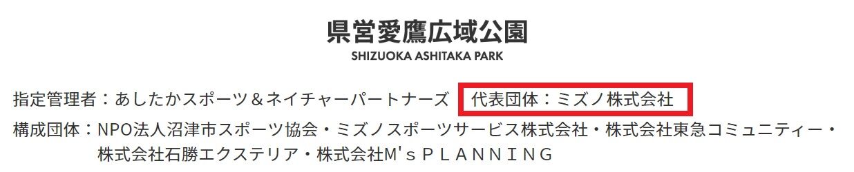 愛鷹広域公園の指定管理者の代表団体であるミズノ↓↓↓